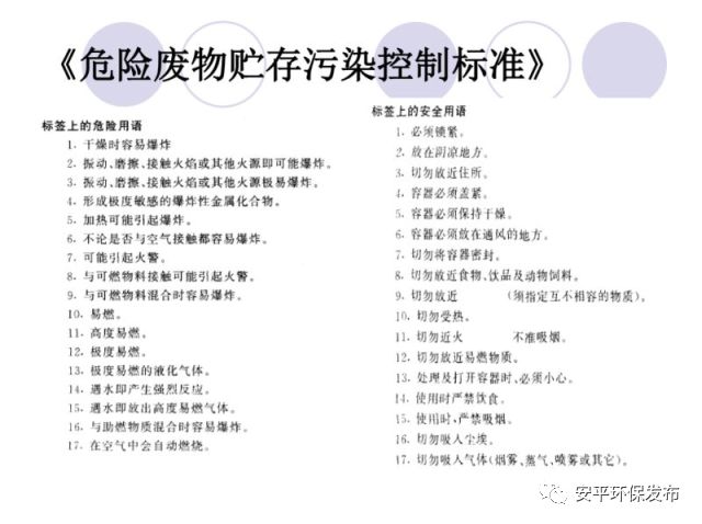 1.危险废物贮存间必须要密闭建设,门口内侧设立围堰,地面应做好硬化及“三防”措施。(防扬散、防流失、防渗漏)。 2.危险废物贮存间门口需张贴标准规范的危险废物标识和危废信息板,屋内张贴企业《危险废物管理制度》。 3.危险废物贮存间需按照“双人双锁”制度管理。(两把钥匙分别由两个危废负责人管理,不得一人管理) 4.不同种类危险废物应有明显的过道划分,墙上张贴危废名称,液态危废需将成装容器放至防泄漏托盘内并在容器粘贴危险废物标签,固态危废包装需完好无破损并系挂危险废物标签,并安要求填写。 5.建立台账并悬挂于危废间内,转入及转出(处置、自利用)需要填写危废种类、数量、时间及负责人员姓名。 6.危险废物贮存间内禁止存放除危险废物及应急工具以他的其他物品。