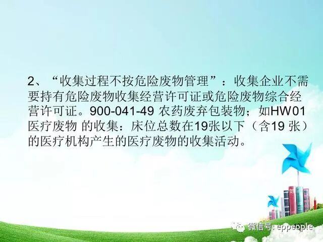 “收集过程不按危险废物管理”:收集企业不需要持有危险废物收集经营许可证或危险废物综合经营许可证;